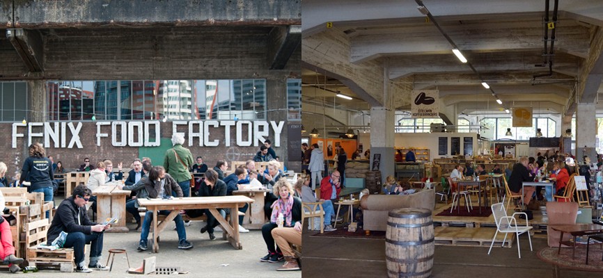 Impossible de se rendre dans cet endroit sans penser (un peu) à la gare Saint-Sauveur Lilloise ou au Camden Market Londoniens. Atypique, il est un mélange entre un petit marché couvert et un lieu de restauration. Placé en bord de Nouvelle Meuse, le Fenix Food Factory était en fait un ancien entrepôt. Abandonné, il a été restauré par sept entrepreneurs gastronomes. Fromage, viennoiseries, cidre, bière, mezzé, charcuterie… Tout le monde y trouve son bonheur. Quand nous y sommes allés, il y avait même un petit concert de contrebasse et violon.