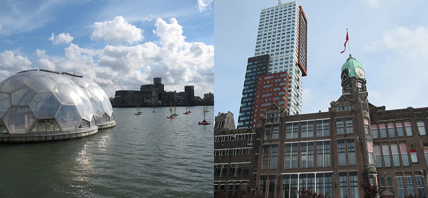 Pour être émerveillé et interloqué, il suffit de lever les yeux et de regarder autour de soi. Les bâtiments modernes font parfois penser aux États-Unis, les plus anciens à la Hollande traditionnelle. Pour n’en citer que quelques-uns : l’immense pont Erasme construit en 1996, la tour Euromast pour voir la ville de très haut, l’hôtel New York ancien siège de la Holland America line, le building nhow Rotterdam avec ses six tours vitrés…