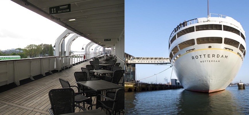 Plus grand paquebot construit sur le sol Hollandais, le ss Rotterdam a navigué de 1959 à 2000. Aujourd’hui amarré pour l’éternité, on peut y dormir, y boire et y manger. Il est aussi possible de le visiter gratuitement : balade à l’intérieur et à l’extérieur. Petit regret : impossibilité de visiter une cabine de voyageurs.
