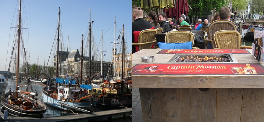 Le vent était assez intense durant ce séjour ! Par hasard, nous avons découvert des petites terrasses bien sympathiques dans le vieux port de la ville. En bord de Nouvelle Meuse (la rivière qui traverse Rotterdam), on peut siroter une boisson chaude et décompresser tranquillement. Il y a même des sortes de tables avec fausses braises bien fumantes incorporées. Abracadabrant pour des touristes de base !