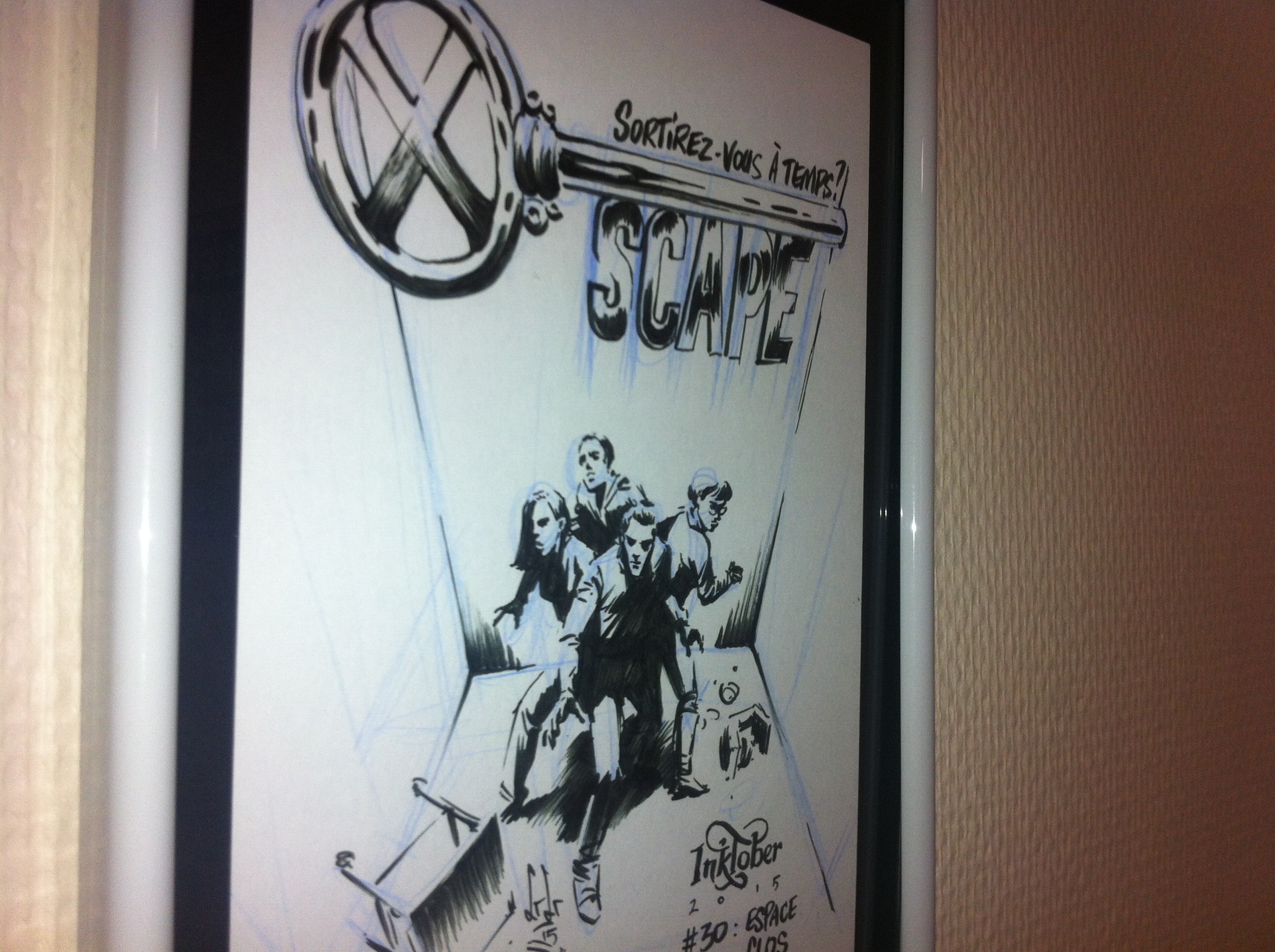 Après une période de désorganisation où tout le monde partait un peu dans tous les sens, cherchant les indices un peu « perso », on s’est mis à parler, à s’écouter et à dire à voix haute les choses sur lesquelles on tombait. Une heure pour sortir de la pièce, c’est beaucoup et peu à la fois ! Alors, on s’active, déduit, fouille, refouille. On est pris au jeu. On se marre, on regarde le chrono qui s’égraine. Heureusement quelques coups de pouces arrivent de temps en temps sur l’écran. Bref, à une minute de la fin du temps, on pensait ne plus parvenir à réussir la mission mais notre abnégation a fini par triompher à seulement 14 secondes de la fin du temps… Fierté ! Quand on sait que seulement 50% des groupes parviennent à remplir la mission.