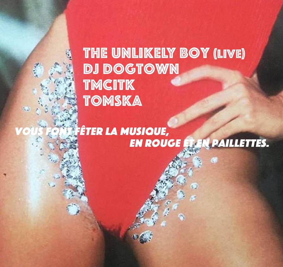 1 live / 3 dj’s (The Unlikely Boy, Dj Dogtown Two many cars in the kitchen et Tomska)