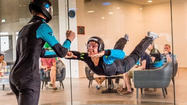 Quand on entend simulateur de chute libre, on se dit que cette activité « extrême » n’est pas pour nous. Pourtant, chez Weembi, le plus jeune participant avait 5 ans et le plus âgé… 96 ans ! On comprend donc tout de suite que ce n’est pas une question d’âge. Et à vrai dire, c’est même hyper rare de trouver une activité qui regroupe tous les âges. Sensible au vertige, j’avais un reste d’appréhension avant de voir à que mes craintes étaient vaines. Une expérience de vol de deux fois une minute, soit plus long qu’un réel saut en parachute ! Une fois la combinaison enfilée, il n’y a plus qu’à se laisser tomber dans l’immense tube de 15m de hauteur et de 5, 18m de diamètre. Mais rassurez-vous, un expert vous tient les mains et vous aide à garder une position pour une prise d’air optimal.