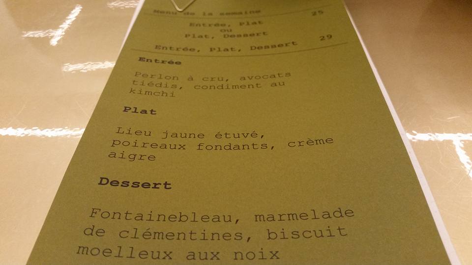 Vous l’avez compris, il vaut mieux financièrement tester ce genre d’établissement le midi. 25 ou 29€ pour deux ou trois services, avec cette qualité, c’est cadeau ! Deux formules accessibles pour un déjeuner ++ dans un lieu moderne où la couleur verte a l’originalité de prédominer et où la sobriété sert d’écrin à la qualité. En soirée, profitez d’un menu dégustation avec fromage et dessert à 60€.