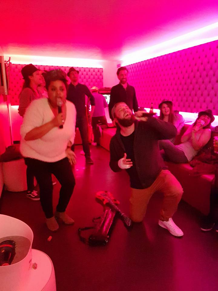 Ce qui est appréciable, c’est que le temps est optimisé. Pas de perte de temps à sortir pour commander au bar ses consos. En deux clics, tout vient à vous. Franchement, on s’est fait une soirée de rois. Champagne Mumm, plateaux de charcuterie et de fromage. Et on ne sait pas arrêter là. La bienséance nous oblige par contre à taire le nombre de tournées commandées. Sûrement au prorata du plaisir ressenti à écouter l’alternance des casseroles confirmées et des talents incompris. Le déguisement est aussi un plus pour permettre au chanteur de rentrer dans la peau de l’artiste d’un soir mais aussi aux moins chanteurs de s’amuser aussi.