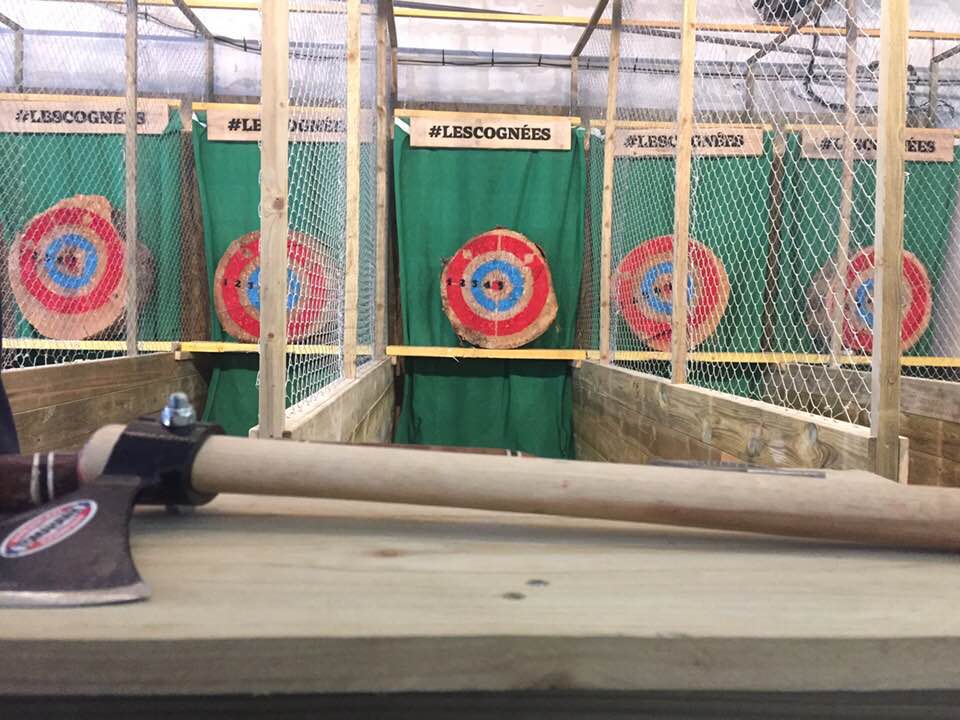 Quand tu rentres chez Les Cognées, rue Carnot à Lille, plusieurs pistes se succèdent. L’idée étant de jouer jusqu’à 3 ou 4 par piste, ce qui laisse la plce pour un bon groupe de pouvoir jouer en même temps. Si cette activité est ultra propice à un délire mixte (parce que très adapté aux femmes également), on vous conseille de la pratiquer avant l’apéro. Et oui, ce sont des vrais hâches…