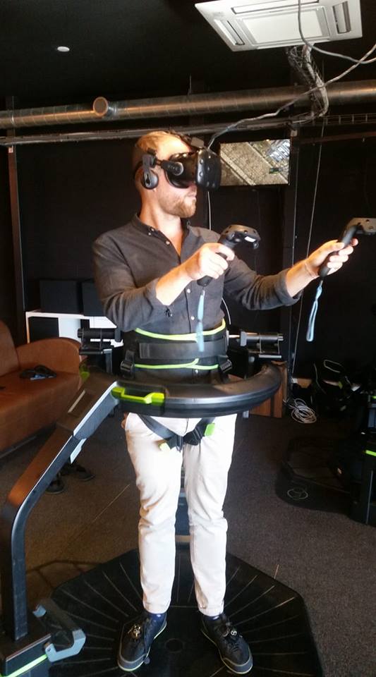 Ceux qui préfèrent rester les pieds sur Terre ne seront pas en reste de sensation. Puisque Immersiv propose trois postes de jeux video en réalité virtuelle. L’idée est simple. Armé de deux manettes (façon flingues), tu cours sur un tapis glissant maintenu par un arné afin de chercher les ennemis et les tuer (zombies, soldats… selon le jeu). La valeur ajoutée étant dans une expérience du jeu video complètement en immersion. C’est plutôt physique même si accessible à tous. Et puis on change de jeu à la demande, ce qui permet une multitude d’expériences différentes en une.