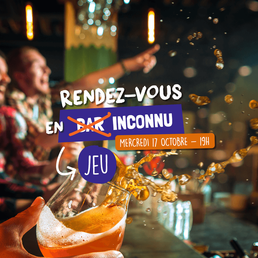 Vous connaissez le Rendez-vous en Bar Inconnu, on vous propose cette fois-ci un Rendez-vous en Jeu Inconnu ! Dans la même convivialité et le même esprit de camaraderie que d’habitude, cette soirée sera dédiée à la découverte d’un nouveau jeu délirant (inconnu et secret) !