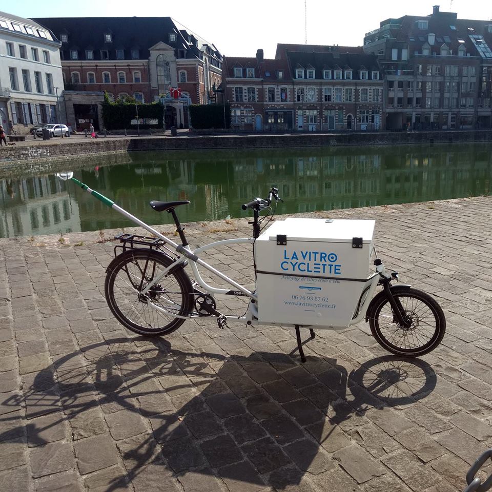 C’est l’idée astucieuse et écologique qu’a eu Vincent, ancien commercial, de venir laver les vitres des commerçants lillois et des particuliers à vélo ! L’idée écolo, au delà de ne pas se déplacer en voiture, est de ne plus utiliser les agents abrasifs des produits d’entretien et les remplacer par des produits naturels avec un supplément d’huile de coude ! A Lille Et dans un périmètre de 5 km autour de la grand place.