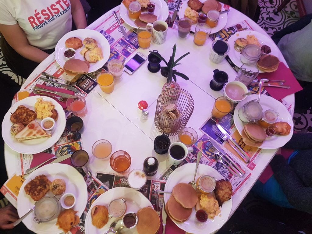 Mais qu’est ce qu’on y mange ?! C’est un brunch qu’on compose avec la carte du week-end, c’est plutôt copieux et toujours très coloré ! On s’est régalés avec des pancakes, de la brioche perdue, du jus d’orange frais, des mini bagels, des œufs brouillés, une mini tartine façon welsh, une petite soupe qui réchauffe ton bidou, un yaourt au muesli… bref il y en a pour tous les goûts ! Et leur choix de pâtisseries est vraiment dingue si tu as encore les crocs après tout ça !