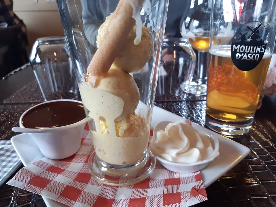 Comme on n’était repus mais pas en plein malaise, on s’est laissé tenté par la belle carte des desserts. Ch’tiramisu pour Jean-Marie, dame blanche pour papa. Et franchement, vous auriez tort de vous en priver car le moment du dessert a été accompagné de légers murmures orgasmiques et continus.