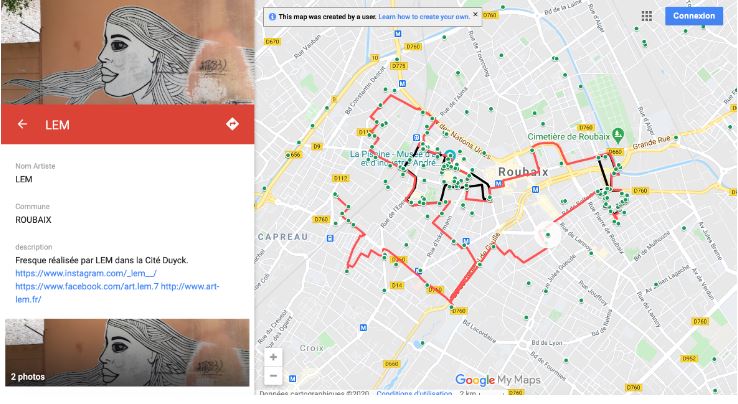 Il y a de quoi faire quelques découvertes à moins d’un kilomètre de la maison pour ceux qui habitent dans la métropole. La carte donne aussi le nom des artistes et les liens vers leurs réseaux sociaux.