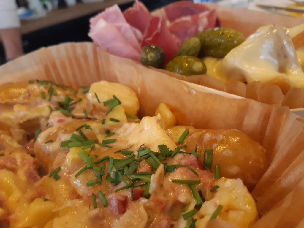 Comme on aime bien faire les choses entièrement, on a testé toute la gamme de plats proposés par Too Schuss ! On a attaqué le dossier par la courgiflette qu’on ne connaissait pas jusqu’alors. Belle surprise ! Le genre de plats qui peut être un bon compromis pour ceux qui culpabilisent de se faire un shoot de calories, avec cet écrasé de courge dissimulé sous le fromage. Vous pouvez aussi craquer pour la reblochonnade qui est une tartiflette sans lardons (parfait pour les végé). La raclette offre l’intérêt de ne pas devoir gratter les petites coupelles après le festin. Notre passion pour les pâtes nous a fait fondre pour la croziflette également, même s’il nous est impossible d’annoncer une préférence…