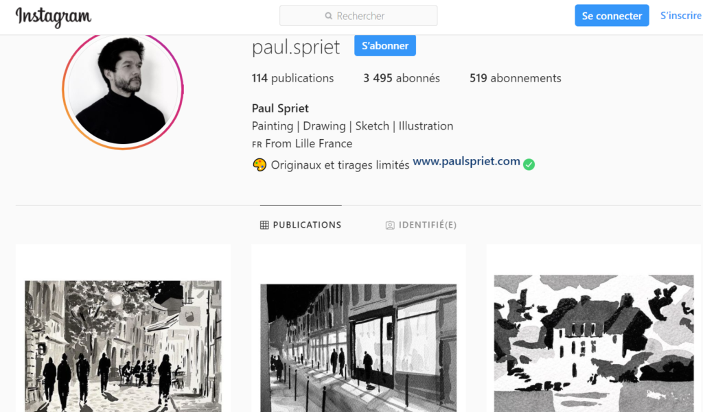 Paul Spriet est un architecte, illustrateur, dessinateur et peintre qui a suivi des cours de dessins et de modèles vivants. Son compte insta présentes ses lavis à l’encre de chine ou à l’aquarelle où il mêle ses passions pour l’architecture et la vie lilloise. Il est possible de passer commande sur sa boutique en ligne. De beaux dessins pour décorer son intérieur !