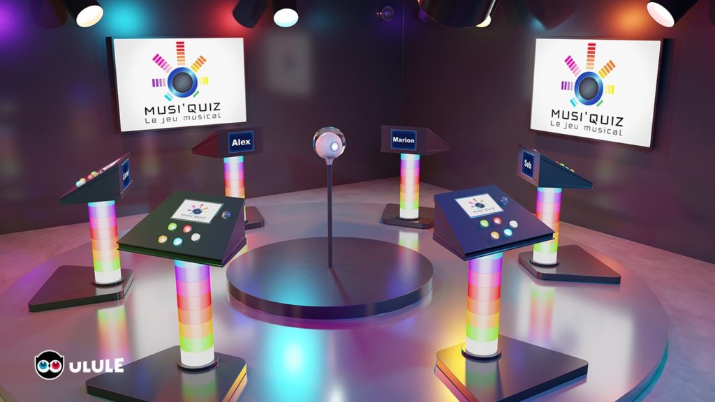 Imaginez… Un plateau TV, des pupitres, des lumières, des jingles et 1h de quiz musicaux, de blind-tests et de défis. Bienvenue chez Musi’Quiz ! Un espace bar et planche apéro pour reprendre des forces pour relever le défi d’une dizaine de jeux musicaux autour de thèmes variés. Ca sent le carton à plein nez …