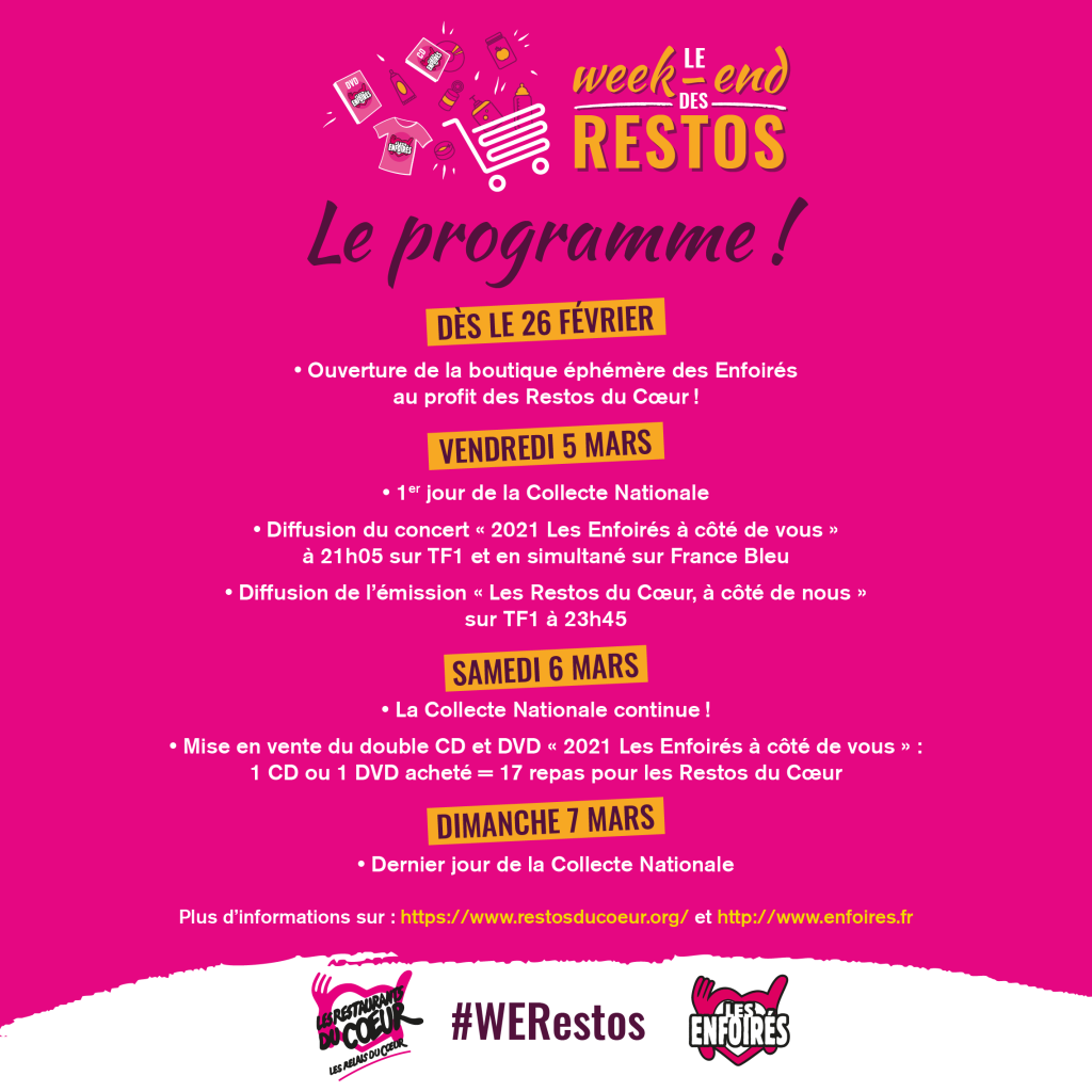 Du 5 au 7 mars, les bénévoles des Restos du coeur, épaulés par des milliers de bénévoles d’un jour, seront donc présents dans les magasins pour récolter des denrées alimentaires non périssables et des produits d’hygiène. Ces produits permettent aux personnes accueillies de bénéficier de repas encore plus diversifiés et équilibrés.