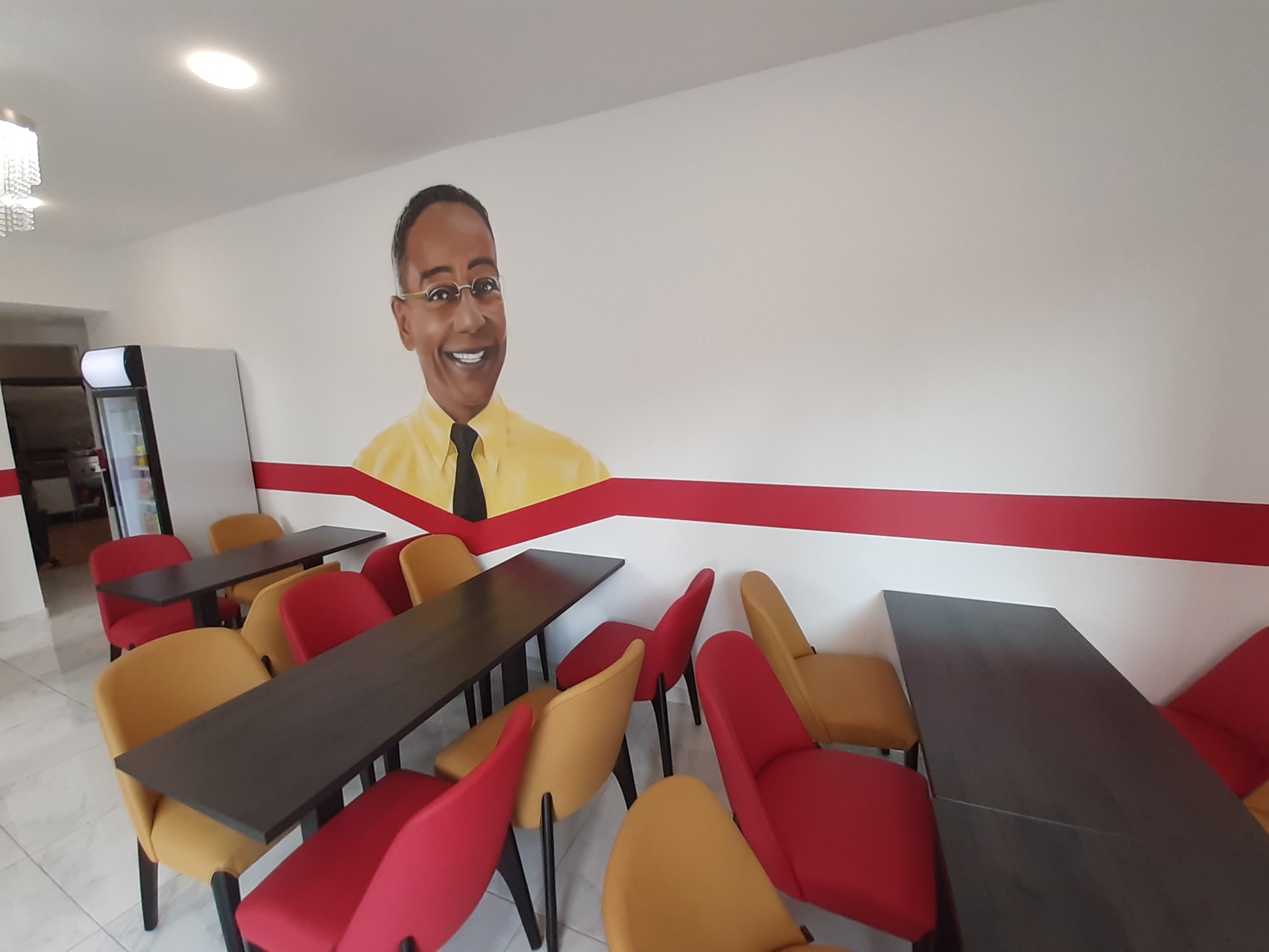 Une fresque à l’effigie de Gustavo Fring garnit le mur et nous plonge dans l’ambiance. A la carte, du poulet mais pas que. On retrouve des burgers, des tenders de poulet, des wings, des brochettes et des filets de poulet !