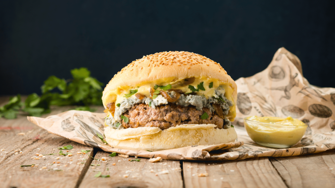 Le Victor // Veau d’origine française, Fourme d’Ambert, Oignons confits, Coriandre, Sauce Tonton Fernand (mayonnaise délicatement sucrée)