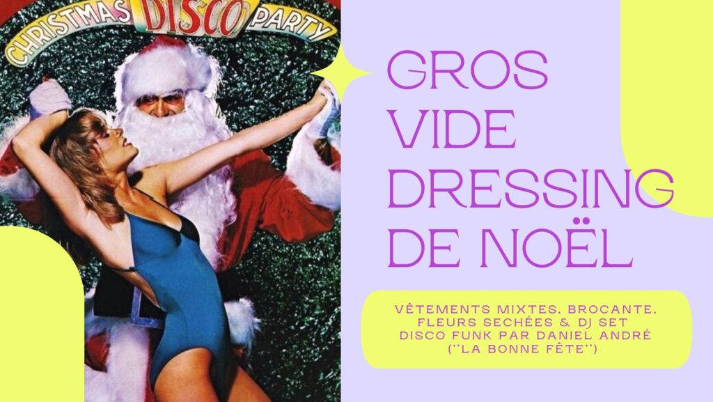 À l’approche de Noël, les Santas de la sape voient les choses en grand et t’ont concocté un vide-dressing XXL en mode groovie. Un big stand de fripes pour les meufs ET pour les mecs. Des bibelots déco vintage. Des décorations artisanales en fleurs séchées. Prix tout doux, accessibles à toutes les bourses. Pour le plaisir de tes oreilles, DJ set by Daniel André de la tribu joyeuse de La Bonne Fête pour faire le plein de funky vibes avant l’hiver. Entrée gratuite. Ca se passe au 117 avenue de la République à La Madeleine.
