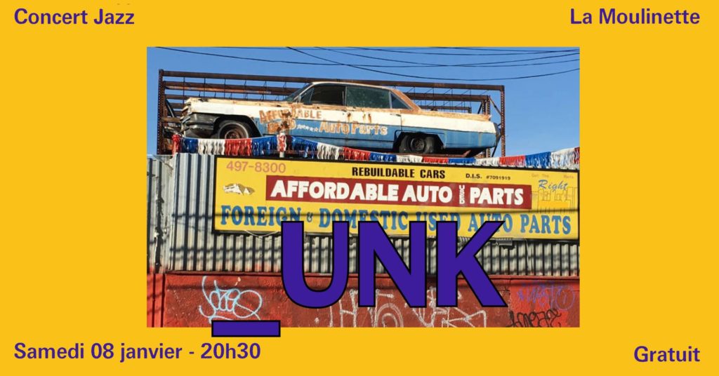_UNK défriche, mixe et confronte les genres, offrant sa lecture singulière d’un jazz contemporain énergique teinté de rock «progressif » ou «expérimental » aux mélodies insolites, mêlant groove, improvisations et ballades atmosphériques. Il nous délectera de sa musique pour un concert à La Moulinette. GRATUIT.