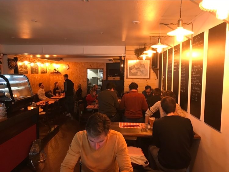 Une couche craquante de fromage s’est formée au dessus et on la casse facilement pour découvrir un welsh parfaitement exécuté. Belle texture, avec un goût de bière et légèrement moutardé. Impeccable. Les pommes de terres apportent également un plus. La salade permet de dégraisser le tout avec un petit assaisonnement comme il faut. Les assiettes sont vides. Sur les autres tables aussi. A l’heure du bilan, force est de constater que parmi tous les welsh qu’on a testé aux quatre coins de la Métropole, il figure dans le petit peloton de tête. Surtout qu’il faut compter seulement 12€ pour ce joli plaisir. Chapeau.