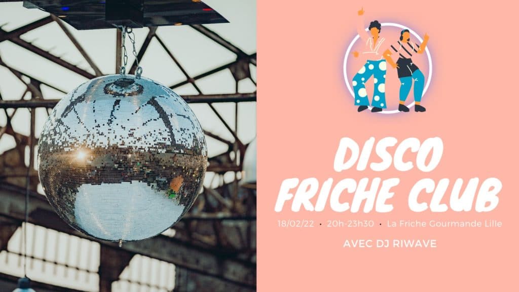 Il parait qu’on peut redanser ! Ca tombe à pic puisque La Friche a décidé de vous organiser une soirée disco de 20h30 à 23h30. Sortez les pattes d’eph, les perruques et les tenues à paillettes pour faire monter en vous la fièvre du vendredi soir. « LA FRICHE DISCO CLUB ». On ne change pas une équipe qui gagne : @riwave pour mixer et animer cette soirée. (Ils font gagner des consos aux mieux déguisés). C’est GRATUIT.