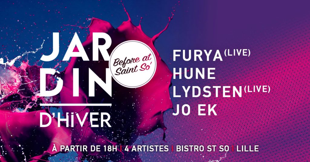 Le bistrot Saint-So continue sa tournée d’adieu (avant fermeture) même si une reprise aura lieu bientôt ! Une série de soirées pour l’occasion avec ce mercredi, le before des Jardins Electroniques, version d’Hiver. Pour l’occasion quatre artistes viennent mixer et mettre le fuego de 18h à 1h. Lydsten, Hune, Furya, Jo Ek aux platines à Saint-So, ça va être quelque chose. Entrée GRATUITE