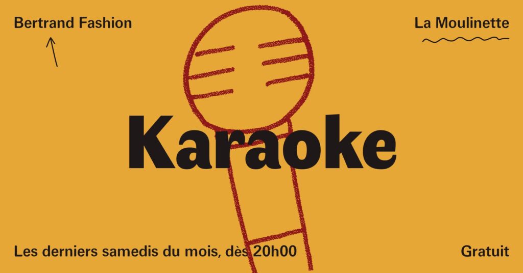 Pas besoin de s’étendre en détaillant un pavé sur cet événement. Tout le monde connait le karaoké. Tu proposes une chanson et tu la chantes devant tout le monde. Simple et efficace. L’occasion de découvrir La Moulinette, ce bar-cantine boulevard JB Lebas où il se passe toujours quelque chose. GRATUIT.
