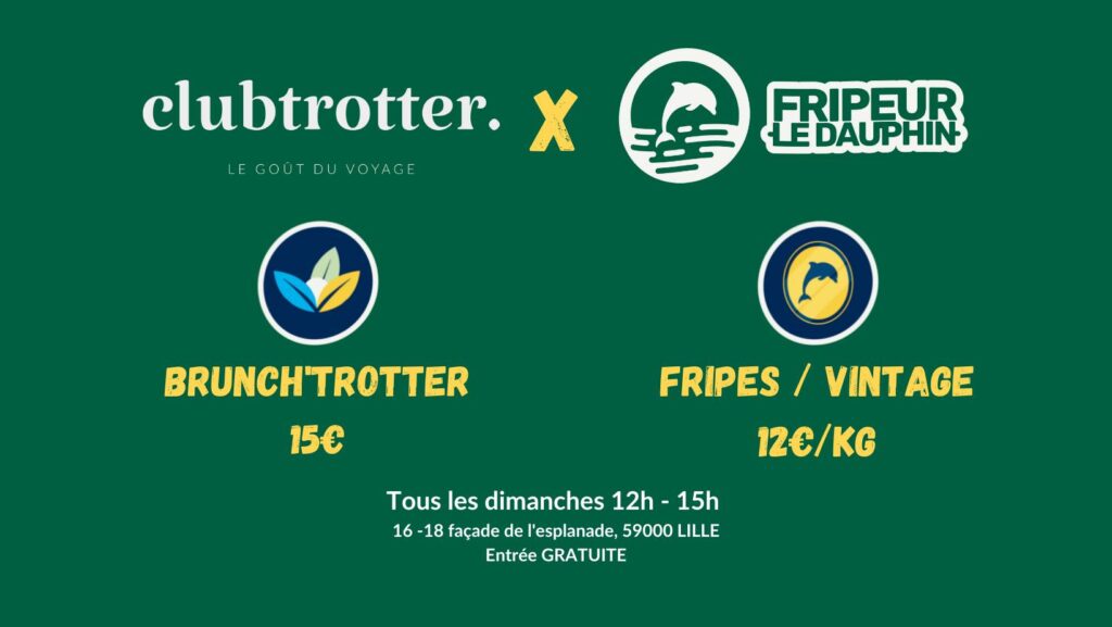 C’est le retour des beaux jours et bientôt l’arrivée du printemps, venez profiter du soleil sur en terrasse, chiller entre amis ou bien manger en famille. Tous les dimanches vous retrouverez le brunch à la carte du clubtrotter pour 15€, en plus des 3 cuisines. Pour ce qui est de l’animation nos terrains de pétanque, cibles de fléchettes et transats XXL vous attendent pour passer un bon moment. Pour les amoureux du vintage et de la seconde main accessible, Fripeur Le Dauphin proposera une fripe éphémère jusqu’à 18h, à 12€ le kg.