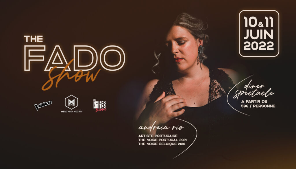 Pour cette première du concept « The Fado Show », le Mercado Negro aura la chance de recevoir une grande artiste venue spécialement de Lisbonne. Andreia Rio grande candidate de the Voice Belgique 2018 & the Voice Portugal 2021 nous fera le privilège d’ouvrir le bal avec ce 1er Showcase privé à 19h. Le tout accompagné d’un repas aux spécialités portugaises dans ce restaurant de Roubaix. 59€