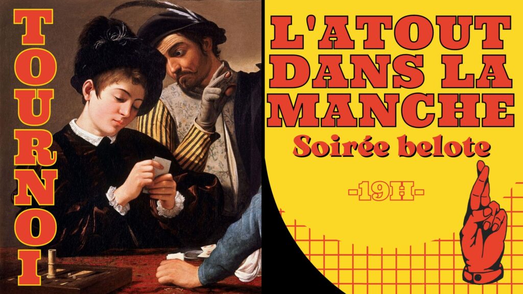 On aime l’idée que le bon jeu de carte de papi et mamie reprenne la hype, alors on en parle ! La première édition vous a tellement plu qu’on repart pour un tournoi de belote récurrent folks ! On est là pour te montrer que la belote n’a rien à envier aux jeux de société les plus modernes. Animé par les fameux sommeliers du jeu de La Luck, tu affrontes plusieurs adversaires toute la soirée. Les serveurs seront aux petits soins : big poutine pour te donner de l’énergie et bières bien fraiches pour oublier tes coups ratés. Le tournoi s’organise en 4 parties de 12 coups de carte. Équipe de deux joueurs. Réservation obligatoire pour deux personnes, sur leur site internet, en précisant ta volonté de participer au tournoi.
