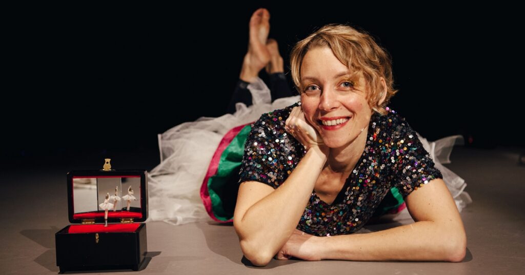 Regarde, ça brille ! est une performance dansée pour les tout petits (0-3 ans), qui met en scène une princesse boule à facette pailletée et colorée, virevoltant au son d’une boite à musique.