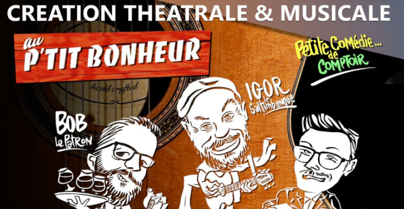 Petite comédie de comptoir, méli-mélo dramatique de bistrot, « Au p’tit bonheur », c’est le bar où se partagent les amitiés, les passions, les désaccords, les éclats de voix, les confidences… C’est aussi le troquet où résonne la musique, celle qui unit, celle qui synthétise les émotions pour leur donner des échos universels. Au P’tit Bonheur, un trio sur les planches à ne pas manquer ! 1h30.