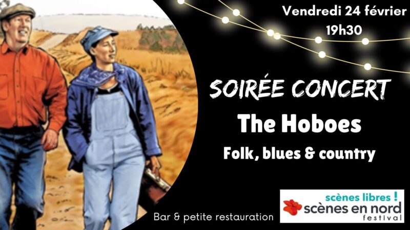 Comme chaque dernier vendredi du mois, le Céanothe accueille, dans le cadre du Festival Scène en Nord, des artistes aux talents variés ! En février, nous accueillons le duo Hoboes, qui propose un vagabondage folk, blues et country le long des voies ferrées d’Amérique du Nord dans les pas de Nanci Griffith, Tom Paxton, Joan Baez, Wooy et Arlo Guthrie, Jimmie Rodgers et de tous les songwriters qui nous ont fait rêver. A Haubourdin à partir de 19h30.