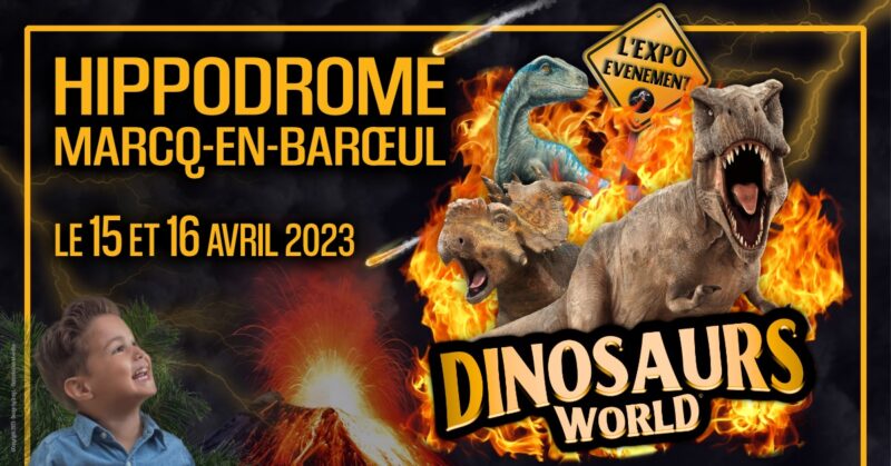 Découvrez Dinosaurs World. Embarquez dans un véritable voyage dans le temps, et découvrez en famille ou entre amis les plus belles espèces disparues ! Actuellement en tournée Européenne, l’exposition Dinosaurs World s’installe à l’Hippodrome de Marcq-en-Barœul le 15 & 16 avril. Ouverture de 10h00 à 12h30 & de 14h00 à 18h30. Au programme de votre visite : 30 Dinosaures Robotisés, Animations pédagogiques, Simulateur 8D, Film, Bacs de fouilles, … A partir de 8€.