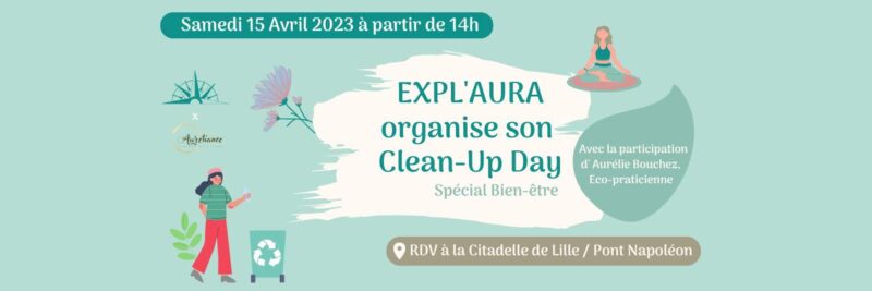 Expl’aura vous invite à son 1er CLEAN-UP DAY Spécial bien-être. Au programme : Ramassage des déchets, Challenges écolo, Séance de rituel bien-être en connexion avec la nature, animée par Aurélie Bouchez, Eco-praticienne. Rendez-vous, dans la joie et la bonne humeur, samedi 15 avril après-midi, dès 14h, au niveau du Pont Napoléon, à la Citadelle de Lille. Pensez à porter des vêtements confortables et à ramener votre bouteille d’eau ! Inscription (gratuite) sur notre lien weezevent !