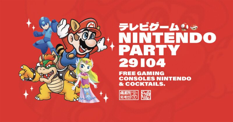 NINTENDO PARTY – Free gaming, consoles Nintendo & cocktails. Alien, resto asiatique quai de l’ouest à Lille, se transforme en immense salon dédié aux jeux vidéos le temps d’une journée. Un hommage à l’univers incroyable du géant Japonais : Nintendo. Toute la journée, vous pouvez venir jouer gratuitement aux consoles de notre enfance, en buvant de bonnes bières, en dégommant des bao, et en sirotant des cocktails. Côté consoles, nous aurons Nes, Super Nintendo, la 64, la Gamecube et la Wii, avec les jeux mythiques. Réservez en avance si vous souhaitez manger le midi ou le soir. Si vous voulez juste boire un verre et jouer, pas besoin. Gratuit.