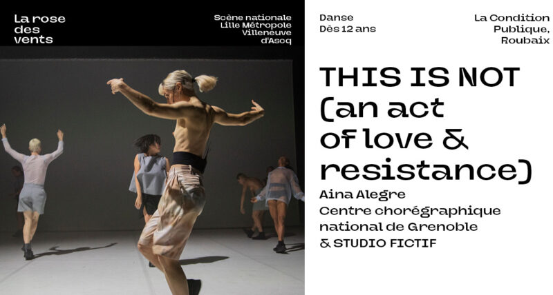 THIS IS NOT (an act of love & resistance) est né d’une recherche autour de l’air, élément impalpable et invisible, et pour autant indispensable à notre corps. Chorégraphe et danseuse à l’énergie débordante et communicative, Aina Alegre invite sur scène neuf performers (quatre musiciennes d’instruments de cuivre et cinq danseurs). Elle poursuit sa démarche singulière en explorant cette fois le corps comme canal d’air, de souffle, de mouvement et de son. Répétitions, variations, résonance, vibration et polyrythmie constituent une partition musicale et dansée pour générer ici un maillage chorégraphique d’interdépendance des corps. Une performance collective joyeuse où la respiration, la danse et la musique fendent l’air. A la Condition publique de Roubaix.