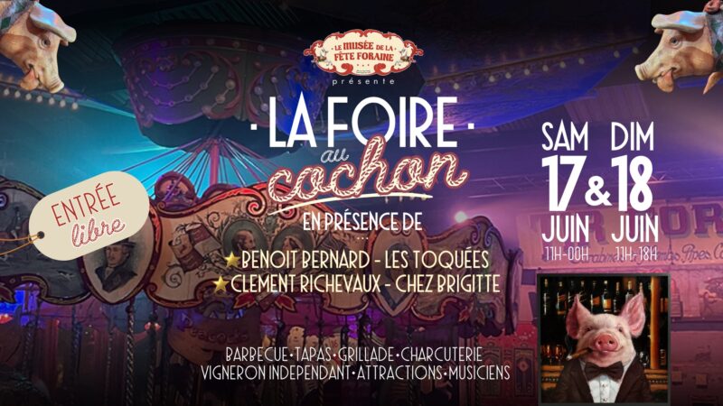 Niveau gueuleton, le Musée de la fête foraine s’est entouré de deux chefs qui savent faire. Benoît Bernard, le chef des Toquées et Clément Richevaux, chef Chez Brigitte. Ils sublimeront les produits d’un producteur basque autour de barbecue, de tapas, de grillades et de charcuterie. Le cochon sublimé sous toutes ses formes. Le genre de petits plaisirs qui parlent aussi bien aux familles qu’aux bandes de copains. Si le musée de la fête foraine dispose de plusieurs espaces magiques, vous pourrez profiter du soleil avec deux belles terrasses. Tout est dit. Durant deux jours, le cochon et les manèges seront à l’honneur dans un lieu unique, pour un savoureux mariage qui n’attend que votre curiosité et votre gourmandise.