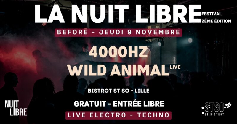 BEFORE LA NUIT LIBRE #2 . Après une première édition incroyable (grâce à vous !) NUIT LIBRE t’invite à nouveau au Bistrot St So pour cette deuxième édition… Attention, on va envoyer du lourd ! Rendez-vous dès le jeudi pour le before, et le vendredi/samedi pour la 2ème édition du NUIT LIBRE Festival. Gratuit.