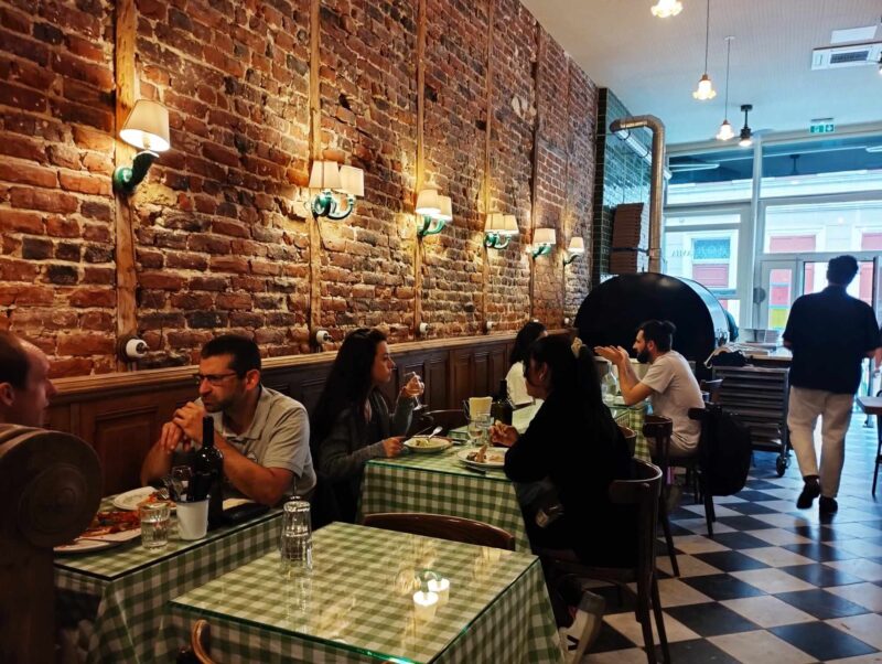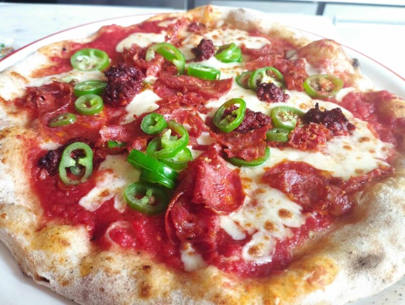 Au delà des pizzas, on a un joli choix d’antipasti allant du beignet de courgette, aux arancini en passant par le pastrami. Un beau choix de burratinas également. Une belle entrée en matière avant de basculer possiblement sur des plats au four comme des aubergines au parmesan ou un gratin de macaroni. En laissant trainer l’oreille, la voisine semblait valider sa lasagne par un « trop bon » qui en disait long. Les amateurs de pastas jetteront leur dévolu sur une des trois recettes dont l’une semble directement inspiré de La Belle et le clochard, à base de boulettes de veau. T’as la réf ?