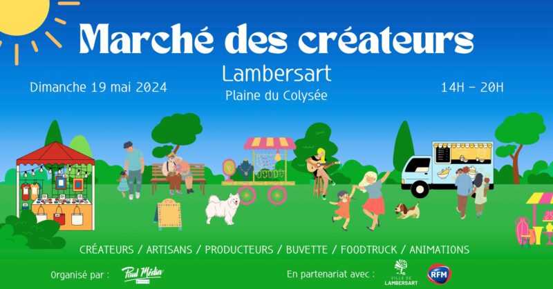 Les marchés des créateurs de Lambersart sont de retours ! Rendez-vous de 14h à 20h, sur la Plaine du Colysée de Lambersart. Les créateurs des Hauts-de-France viendront exposer le temps d’une journée. Les promeneurs pourront alors découvrir différents stands, écouter de la musique et se restaurer ! Une buvette et des food-trucks seront également présents ! Nous vous attendons nombreux pour partager avec nous ce moment convivial. Évènement gratuit, en partenariat avec RFM et la ville de Lambersart.