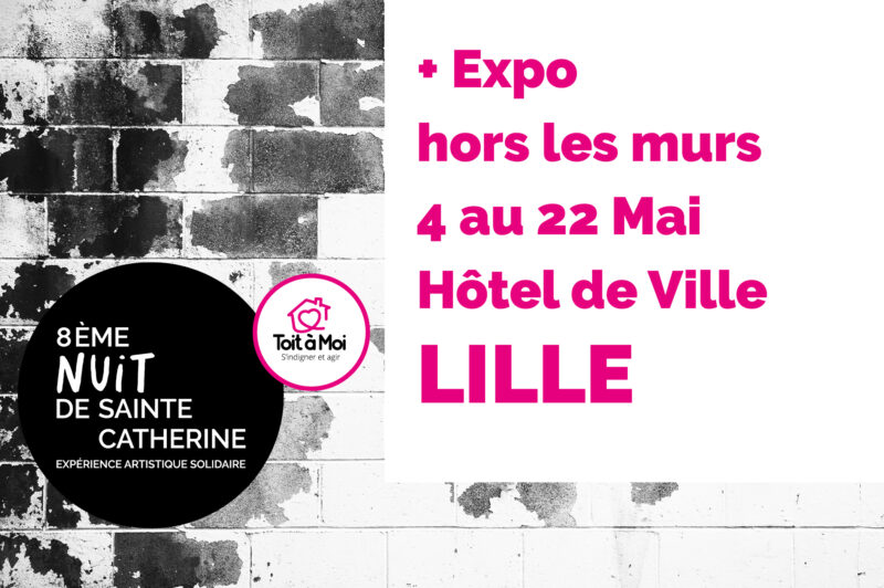 Ces œuvres seront présentées dans le petit carré Saint-Sauveur de l’hôtel de ville de Lille pendant trois semaines du 4 mai au 22 mai, du lundi au vendredi de 8h à 17h et le samedi matin de 8h à 12h. 21 artistes du Street Art ont réalisé, de façon bénévole, des œuvres en lien avec l’objet de la destination des fonds pour ce 8ème concert de la Nuit de Sainte-Catherine : Association « Toit à Moi » pour aider les personnes sans-abri à changer de vie.