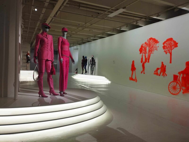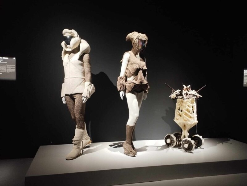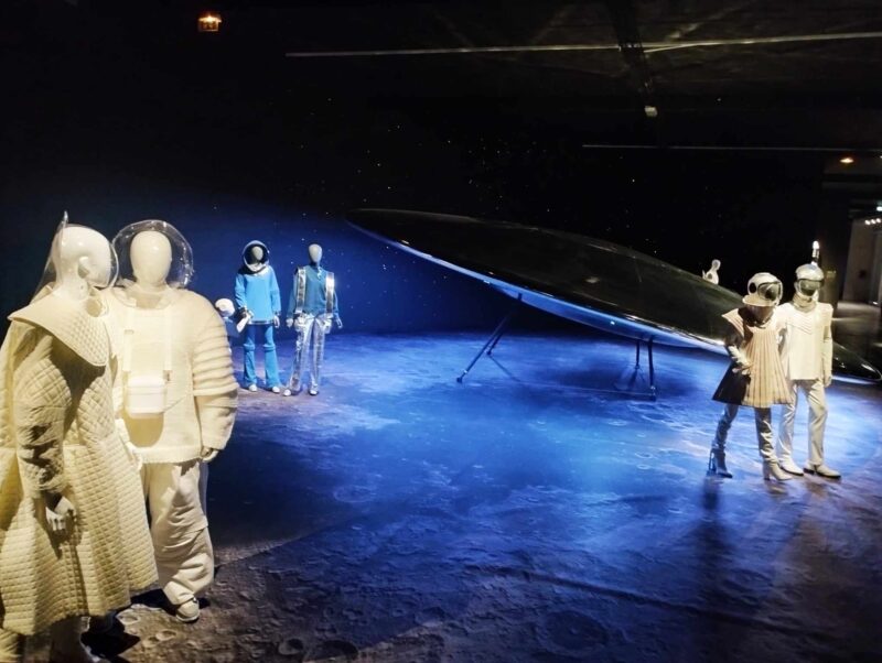 Une scène attend de futurs défilés et événements. A l’étage, le sport, les tenues des JO, des créations de vêtements incroyables pour sports mécaniques, tendances actuelles et upcycling. Mais aussi des collab entrecréateurs et marques de sport comme JC de Castelbajac avec Rossignol. Le dernier étage est réservée au voyage dans l’espace et dans le futur. Un passage sur Mars et la Lune, à travers une exploration spatiale sensationnelle avec des textiles particuliers. Une ouverture vers l’habitat martien et le monde de demain.