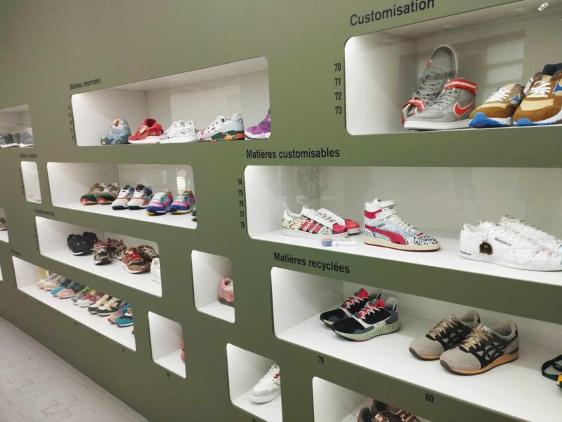 Au delà de la teinte sportive de l’exposition, il y a au Rez de chaussée, un pop corner qui va voir défilé des écoles de mode durant les mois à venir. Une superbe collection de sneakers vous attend avec des pépites historiques comme la 1ere paire de Jordan datant de 1985. Des créations où le streetwear et la mode s’influencent.