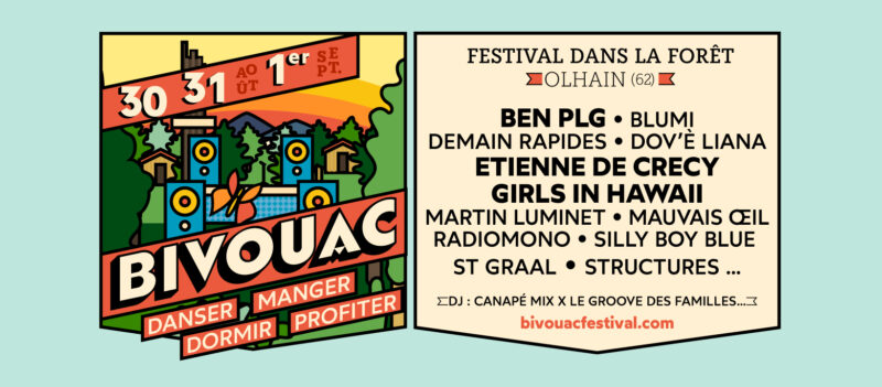 Si vous cherchez un super moyen de clôturer la parenthèse estivale, on a une superbe idée ! Le festival BIVOUAC revient pour la seconde édition pour le dernier weekend d’août. Le retour de l’éco & slow festival au Parc départemental d’Olhain dans le Pas de Calais avec une ambiance unique. Deux scènes pour écouter du son au milieu des arbres centenaires, une piscine autour de laquelle danser, des artistes au top comme Etienne de Crécy ou Girls in Hawaii, mais également un tas de choses à faire pour vivre un weekend compet en famille.