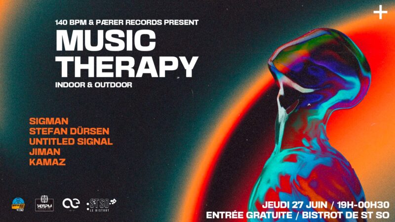 140 Bpm Sound System et Pærer Records vous propose pour ce dernier jeudi de juin, une musique thérapie. De manière crescendo, nous vous invitons à ce voyage électronique axé sous l’ouverture d’esprit. De 18H à 22H, apéro chillout à l’extérieur, ambient et electronica se croiseront pour partir sur les routes technoïdes. À l’intérieur continuera la thérapie, cette fois plus physique que mentale, Electro, Techno et Modern Drum & Bass.