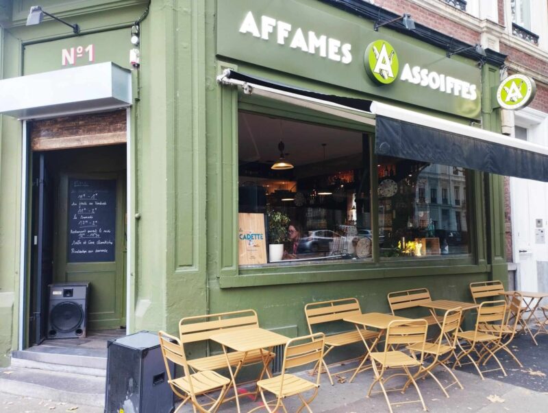 Affamés, Assoiffés se situe entre Vauban et Cormontaigne à Lille. C’est un midi qu’on pousse les portes du lieu. Une belle terrasse, une déco assez chaude faite de bois et de broc. Une carte spéciale pour le midi propose des plats plutôt réconfortants. Croquettes de Serrano, planche de charcuterie, Mont d’Or chaud, Gravelax de saumon pour le starter. Burger, risotto végé et pièce du boucher pour la consistance. On se laissera tenter par le plat du jour, le filet mignon sauce chorizo et frites. Pour le sucré, on conclut avec de la pana cotta ou un brownie au chocolat. Un bon moment dans une belle adresse de quartier.
