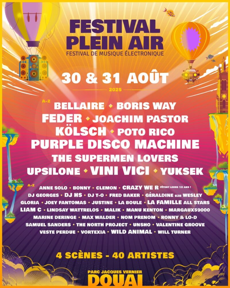 « LE » festival électro de Douai vous promet de l’amour et de la musique face au plus beau lac des Hauts-de-France. Au programme : électro, techno, house, bass house, EDM, trance… sur 4 scènes, avec 40 artistes. Et surtout beaucoup d’amour ! Avec : Purple Disco Machine, Kölsch, Vini Vici, The Supermen Lovers, Yuksek, Upsilone…